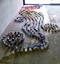 Art blurb becomes art in ‘Journey’s End’ where planes and boats and houses made from recycled art mags represent a creative and geographical journey.